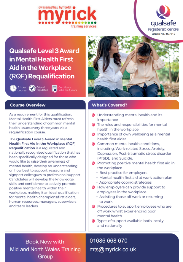 QA Level 3 Award in Mental Health First Aid in the Workplace (RQF) Requalifying