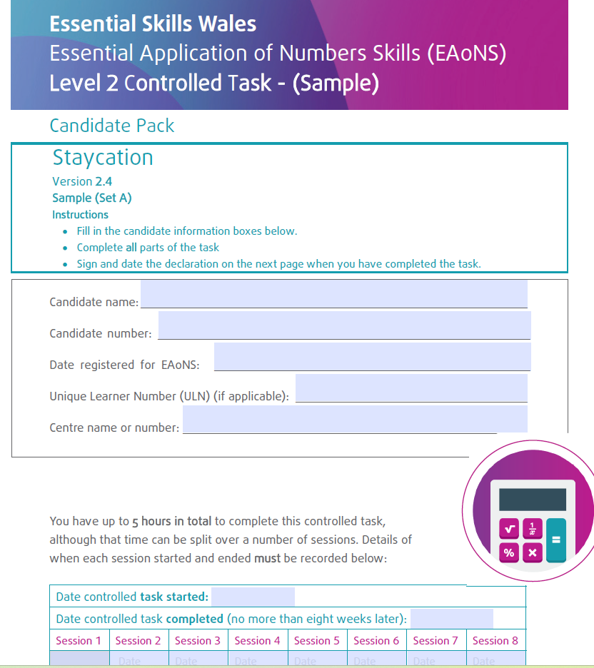 Essential Skills WalesEssential ApPlication of Number Skills (EAonS)Level 2 Controlled Task - Sample CLICK HERE TO DOWNLOAD