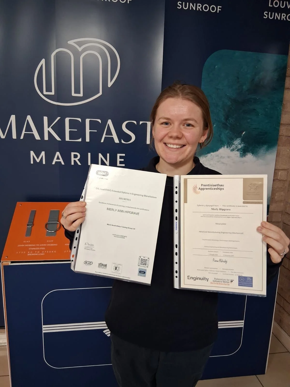 Myrick Training Services is proud to celebrate the outstanding achievement of Merly Hipgrave, who has successfully completed her Level 4 Advanced Manufacturing Engineering (Mechanical) apprenticeship framework. Merly, who works as a Design Engineer at Makefast Ltd in Newtown, has demonstrated exceptional dedication and technical growth throughout her apprenticeship journey.